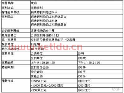 交易时间上午09:00—10:15 10:30—11:30 下午13:30—14:10 14:20—15:00 最后交易日 合约交割月份15日(遇法定假日顺延)交割日期 最后交易日后连续五个工作日 温馨提示:以上信息仅供参考。